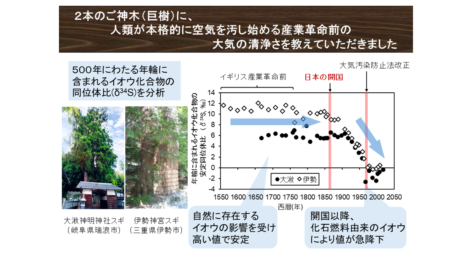 御神木が語る大気汚染の移り変わり ~年輪のイオウが示す500年の環境変化の記憶~