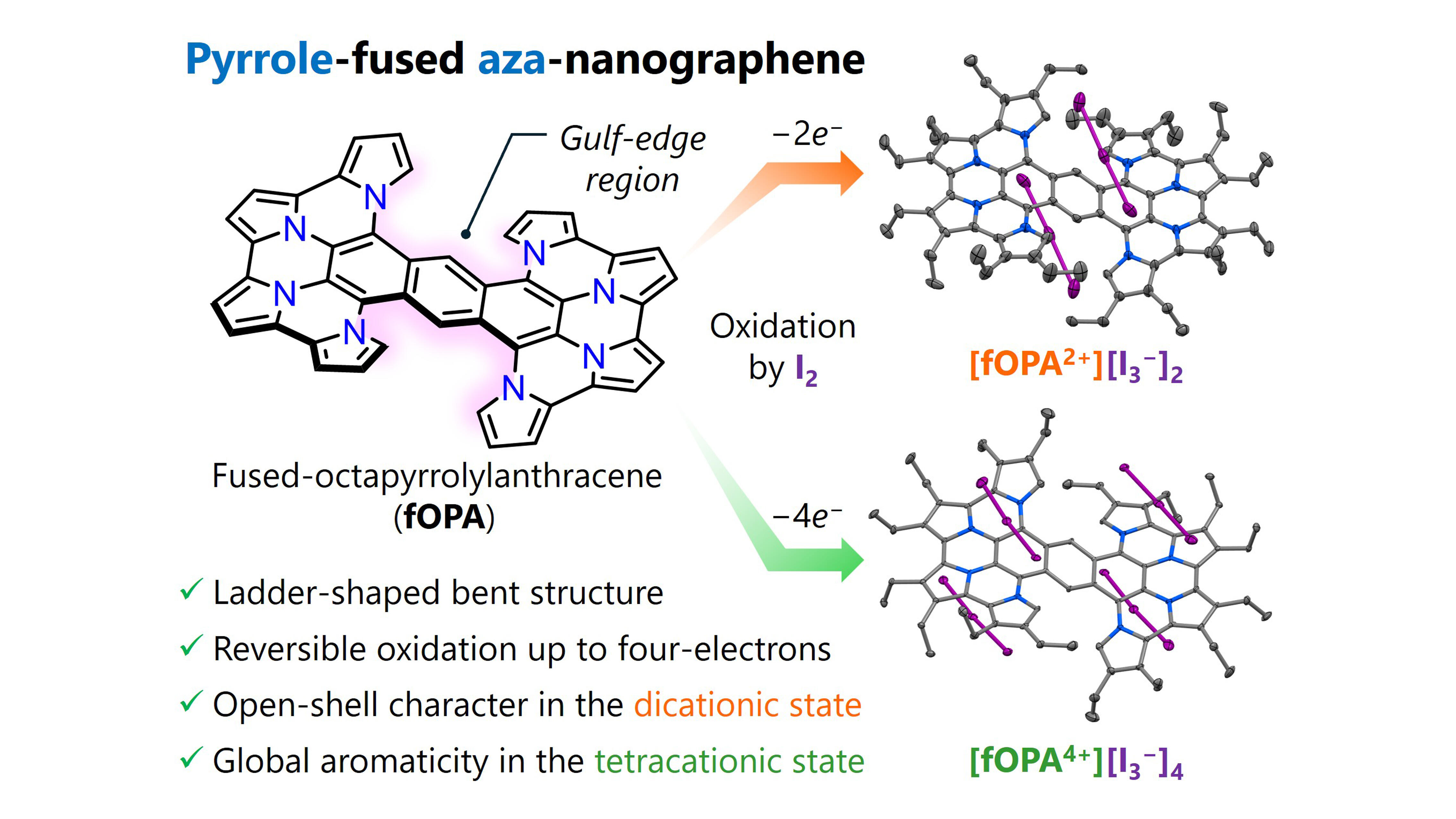 分子が曲がり、性質が変わる!酸化で姿を変えるナノグラフェンーピロール縮環アザナノグラフェンが示す、酸化状態に応じた構造変化と電子特性を解明ー