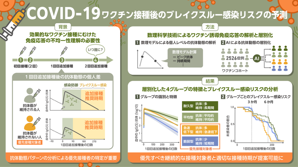 なお、本研究で用いた解析手法は、さまざまな種類のワクチン接種に応用が可能であり、柔軟性の高さから、将来のパンデミックやポストコロナ時代における個人および集団レベルの免疫強化政策の立案に貢献することが期待されます。