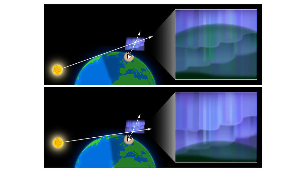 自然科学研究機構核融合科学研究所は2023年5月にスウェーデン・キルナ「オーロラ観測用ハイパースペクトルカメラ※1(HySCAI: Hyperspectral Camera for Auroral Imaging)」を設置し、同年9月より本格的な観測を開始しました。このたび、核融合科学研究所の居田克巳特任教授、吉沼幹朗助教、京都大学生存圏研究所の海老原祐輔教授、名古屋大学宇宙地球環境研究所の塩川和夫教授の研究グループは、HySCAIを用いて天文薄明※2時に青い光を放つ窒素イオン(N₂⁺)オーロラの高度分布を観測することに成功しました。本研究では、太陽光がオーロラを照らす高度が薄明の進行とともに変化する現象を利用するという、これまでにない全く新しい手法を開発し、これにより、窒素イオンの発光強度の高度分布の精密観測に成功しました。本成果は、発光のピークが高度約200kmに位置し、その強度が極めて強いことを見出しました。