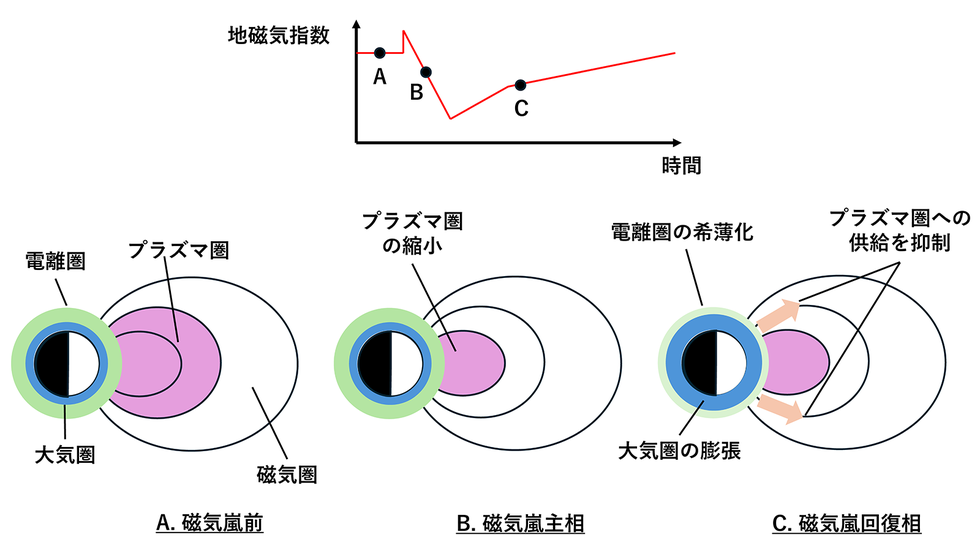 ・プラズマ圏の大きさが地球半径の1.5倍の高度域にまで急速に縮小し、元の状態に回復するまで4日以上も要していたことを発見。