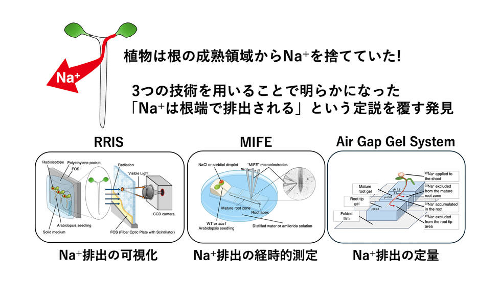 植物は葉から根へナトリウムを送り返し、根の"成熟領域"で捨てていた――根端で排出される、という従来説を覆す、ナトリウム排出の実証――