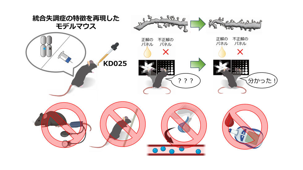その結果、Rhoキナーゼ2※1の働きを選択的に抑える薬剤が、統合失調症に関連する認知機能の障害や行動の異常を改善し、さらに副作用も起こりにくい可能性を明らかにしました。